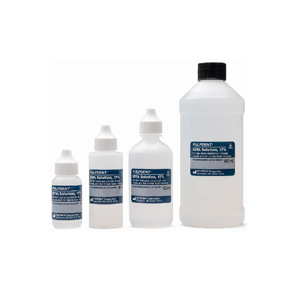 Pinit Pulpdent: EDTA Solution 17% Neutral PH 30ml Bottle - EDTA-30(0)No Reviews yet SKU: Pulpdent: EDTA Solution 17% Neutral PH 30ml Bottle - EDTA-30 Manufacturer: Pulpdent CorporationMPN: EDTA-30 $20.99 Quantity discounts available QuantityPrice This item is IN STOCKCurrent Stock: 4 Quantity -+ Add to Shopping Cart Details 60mL bottleEDTA Solution17% neutral phFor the instrumentation of root canals and for smear layer removals Details Back Details60mL bottleEDTA Solution17% neutral phFor the instrumentation of root canals and for smear layer removalsSKU:06-067-EDTA-60 Reviews 0 Back Ratings & ReviewsNo reviews availableBe the first to Write a Review